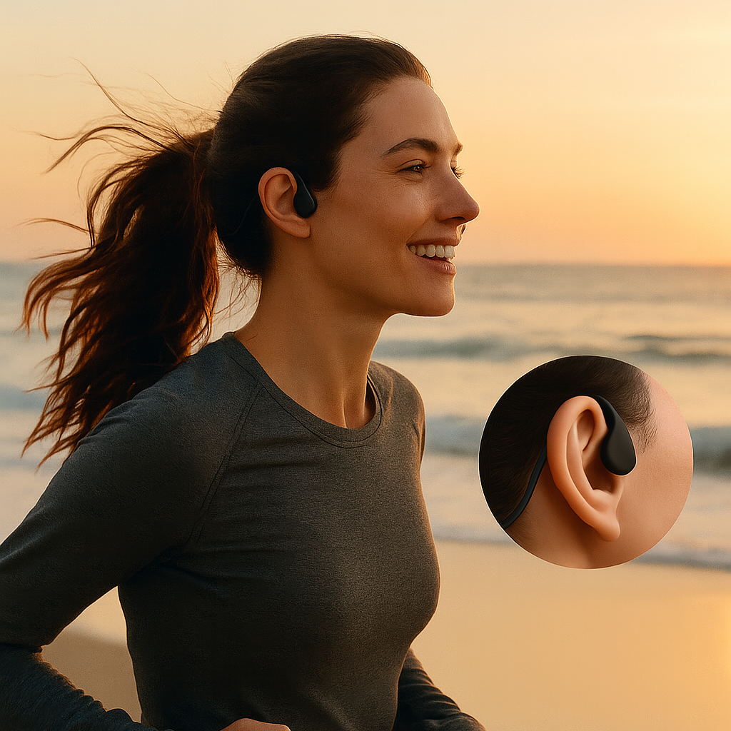 Sonaura vous permet de rester connecté en toute sécurité pendant le sport, avec un son clair et sans rien dans les oreilles.